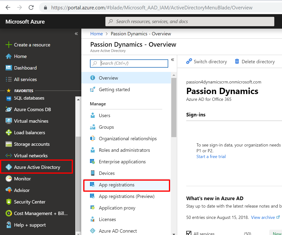 1. Login to  Azure Portal  ( Use the same credentials as your dynamics crm, if it asks you to sign up and setup trial, you can do that)