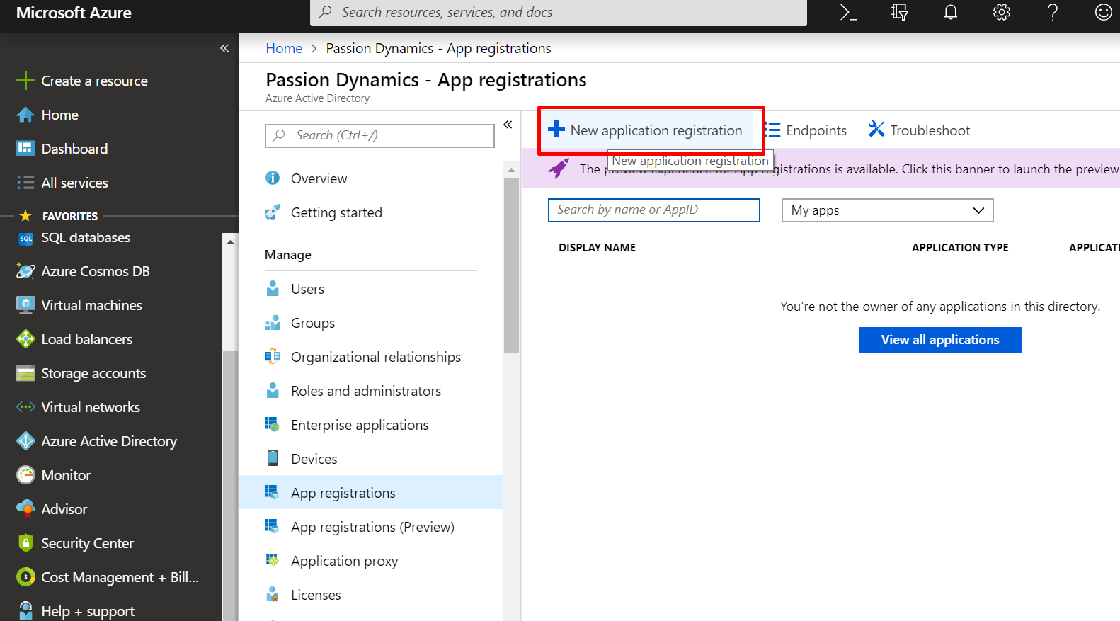 3. Click on “New application registration”