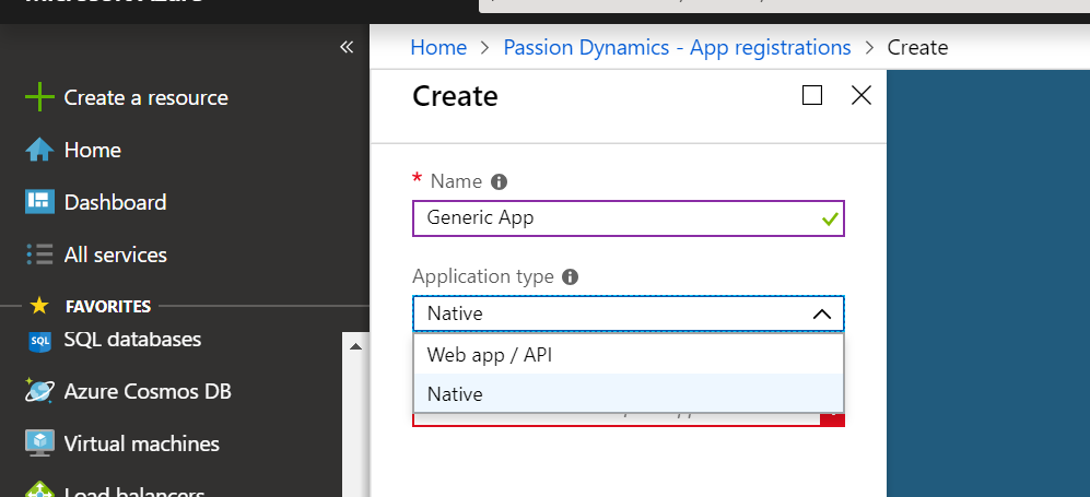 4. Add the name of the application and select the Application type as “Native”: