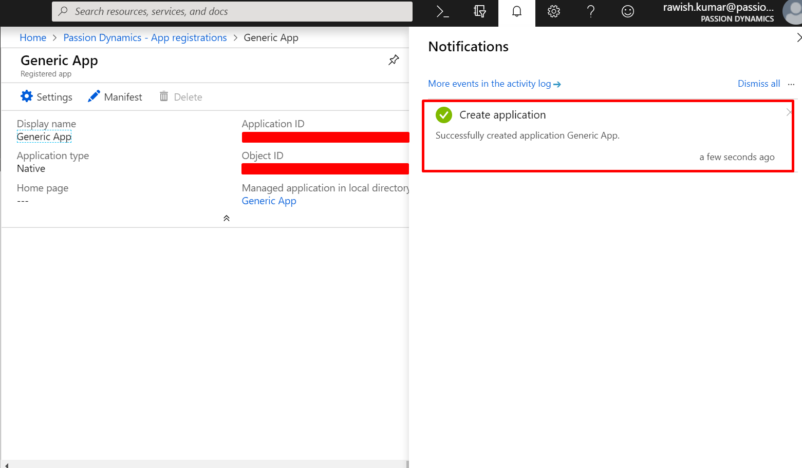 6. It will take some and create the application for you ( Note down the Application ID , you would need it when connecting to dynamics crm using OAuth):